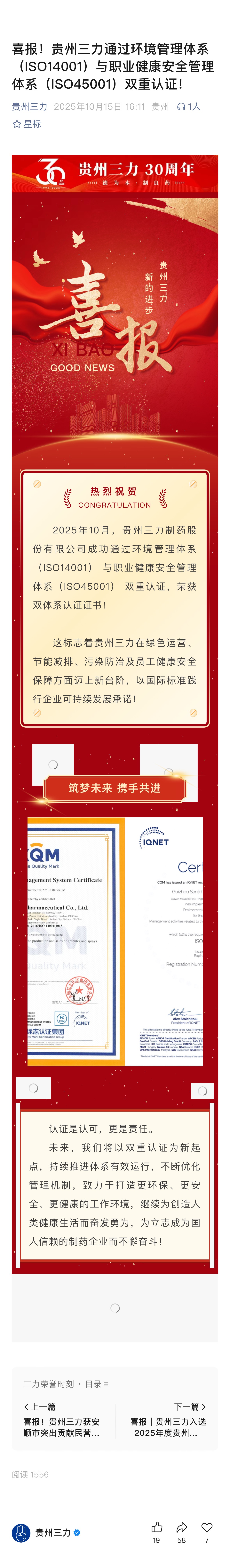 喜报!贵州三力通过环境管理体系 (ISO14001)与职业健康安全管理 体系(ISO45001)双重认证!