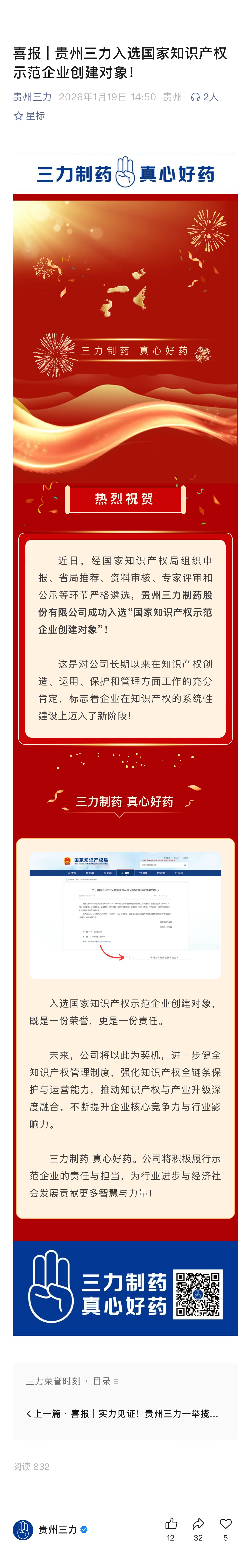 喜报|贵州三力入选国家知识产权示范企业创建对象!